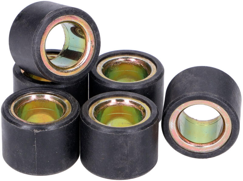 Variátor görgő szett 20x15 – 14,50g (6 db) - Kyoto Termék leírása: Ez a versenyképes áron kapható, standard minőségű variátor görgő szett ideális választás maxi-robogókhoz 125 cm³-től. A Kyoto által gyártott görgők kiváló minőségű anyagokból készülnek, biztosítva a hosszú élettartamot és megbízhatóságot. A szett 6 db, 20x15 mm méretű és 14,50 g súlyú görgőt tartalmaz, amelyek különböző robogó modellekhez használhatóak. Fontos megjegyezni, hogy a görgők száma (6 vagy 8 db) a robogó típusától függően változhat. A variátor görgők különböző méretekben és súlykategóriákban érhetők el, így minden felhasználó megtalálhatja a saját járművéhez leginkább megfelelőt. A Kyoto variátor görgők precíziós gyártási folyamata biztosítja a kiváló teljesítményt és az optimális gyorsulást, így robogója újra tökéletes formában lehet. Főbb jellemzők: Méret: 20x15 mm Súly: 14,50 g 6 db görgő a szettben Standard minőség Ideális maxi-robogókhoz 125 cm³-től Válassza a Kyoto variátor görgő szettet, ha megbízható és tartós alkatrészekre van szüksége robogójához!