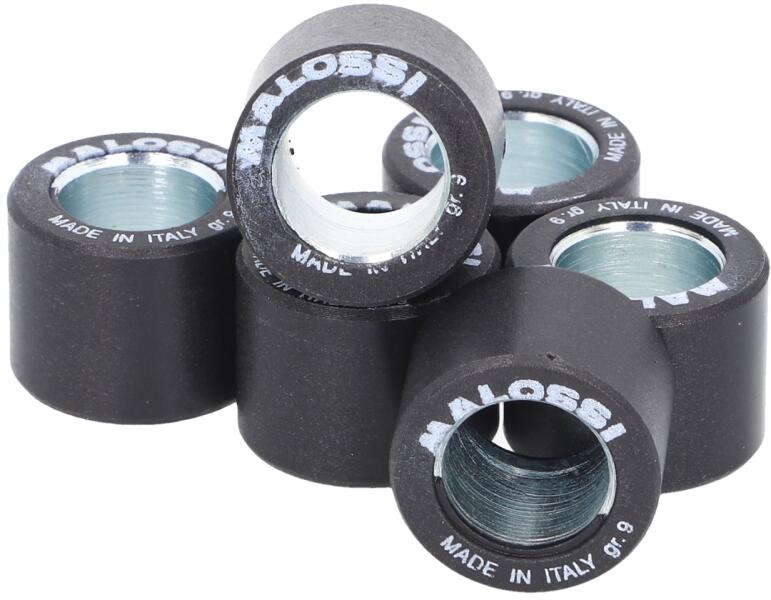 A Malossi variátor roller súlyok ideális választások a robogók tuningolásához. A saját kenésű anyag biztosítja a tiszta váltást, míg a HT súlyok kiválóan tartósak. Széles választékban kínáljuk a Malossi variátor roller súlyokat, különböző méretekben és súlyokban. Az alábbiakban felsoroljuk a leggyakrabban használt méreteket a különböző tuning variátorokhoz: Polini 16x13, Hebo 17x12, Malossi 16x13, TopPerformances 15x12, Minarelli eredeti 15x12, Piaggio (Zip+Sfera 1. széria) 17x13.5, Piaggio (-1998) 16x13, Piaggio (1998-) 19x15.5, Morini 17x12, Peugeot/ Kymco/ Honda 16x13. Az ajánlatunkban egy komplett készletet találsz, amely 6 darab 18x14mm - 9.0g súlyt tartalmaz. A Malossi HT súlyok kiválóak a versenypályán történő használathoz.