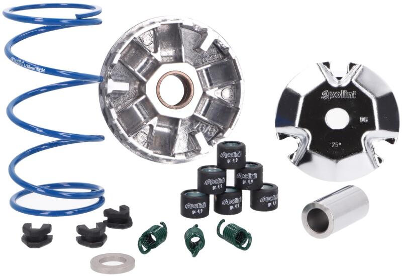 A Polini a piac egyik legerősebb variátorát kínálja a Hi-Speed modellel. A görgős pályák úgy vannak kiszámítva, hogy a rendelkezésre álló motorteljesítmény jelentősen jobban átjut az útra. Ez a jelentős gyorsuláshoz vezet. A Polini ellentétben a versenytársakkal, nem helyezett túl nagy hangsúlyt a maximális sebességre. Ez ugyanúgy növekszik, de kevésbé, mint a Malossi és társai esetében. Cserébe viszont garantáltan a legjobb húzást nyújtja, így az egyik legalkalmasabb variátor a mindennapi használatra. A csomag tartalmazza a variomatikus görgők egy szettjét 16x13 méretben, 4,9g tömegűekkel, egy szett kuplungrugóval és egy erősebb nyomórugóval. A variátor teljesítményének teljes kiaknázása érdekében ajánlott a lambda szimulátor 171.0010 vagy egy nyitott ECU, mint például az NK390.54 felszerelése is. Ez a variátor többek között a következő járművekre is alkalmas: YAMAHA: GIGGLE 50 4T H2O ie, C3, VOX (XF) - NEO'S 50 4T 2009 - ZUMA 50 4T F, FX - AEROX 50 4T F, R LC ie E2 - AEROX 50 4T R LC ie E4 2018-tól kezdődően - NEO'S 50 4T LC ie E4 2018-tól kezdően MBK: OVETTO 50 4T ie - BOOSTER 50 X 4T ie - NITRO 50 4T H2O ie E2. MBK - Booster X 50 4T MBK - Nitro 4 50 4T 14- 1GB MBK - Ovetto 50 4T 13- 2AC SA46 Yamaha - Aerox 50 4T AC 14-17 E2 [SA426] Yamaha - Giggle XF 50 ie 4T 07-10 E2 [SA351/ 15P] Yamaha - Neos 50 4T 13-17 E2 [SA46/ 2AC]