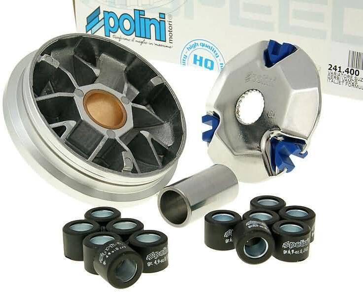 Polini Hi-Speed variátor - Morini Gyártó: Polini Leírás: A Polini Hi-Speed variátor az egyik legerősebb hajtást kínálja a piacon elérhető variátorok közül. A görgőfelületek javítják a teljesítmény átvitelét, ami növeli a gyorsulást, miközben kevesebb hangsúlyt fektet a végsebességre. Ez egy olyan teljesítmény, amit érezni lehet, bár nem egészen olyan erős, mint a Malossi és társainak opciója. Kiváló választás mindennapi használatra. Szállítási tartalom: 2x görgőszett (16x13 mm, 6.9 g és 4.9 g) 1x csúszkaszett Atala - Byte 50 Atala - Hacker 50 AC Atala - Hacker 50 LC Atala - Skeggia 50 AC Atala - Skeggia 50 LC Benelli - 491 RR 50 (03-) - [Morini] Benelli - 491 RR Replica 50 (03-) - [Morini] Benelli - 491 ST 50 (03-) - [Morini] Benelli - Naked 50 AC (03-) - [Morini] Benelli - Pepe 50 (03-06) - [Morini] Derbi - Vamos 50 Hyosung - SB 50 Cab / Gamma 97- SB50G Hyosung - SB 50 M Supercab 06- KM4CA12 Hyosung - SD 50 Avanti Hyosung - SF 50 99-04 KM4CA14A7 Hyosung - SF 50 B Racing 05- KM4CA14 Hyosung - SF 50 R Rally 05- KM4CA15 Italjet - Formula 50 AC [Morini] Italjet - Formula 50 LC [Morini] Italjet - Torpedo 50 AC [Morini] Italjet - Velocifero 50 AC [Morini] Malaguti - Crosser 50 AC [Morini] Simson - SR 50 Star Automatik (96-01) - [Morini] Suzuki - AH 50 Address 92-95 CA1GA Suzuki - AP 50 95-99 CA1JA Suzuki - Katana 50 LC -99 Suzuki - Sepia 50 Suzuki - Zillion 50 LC -99